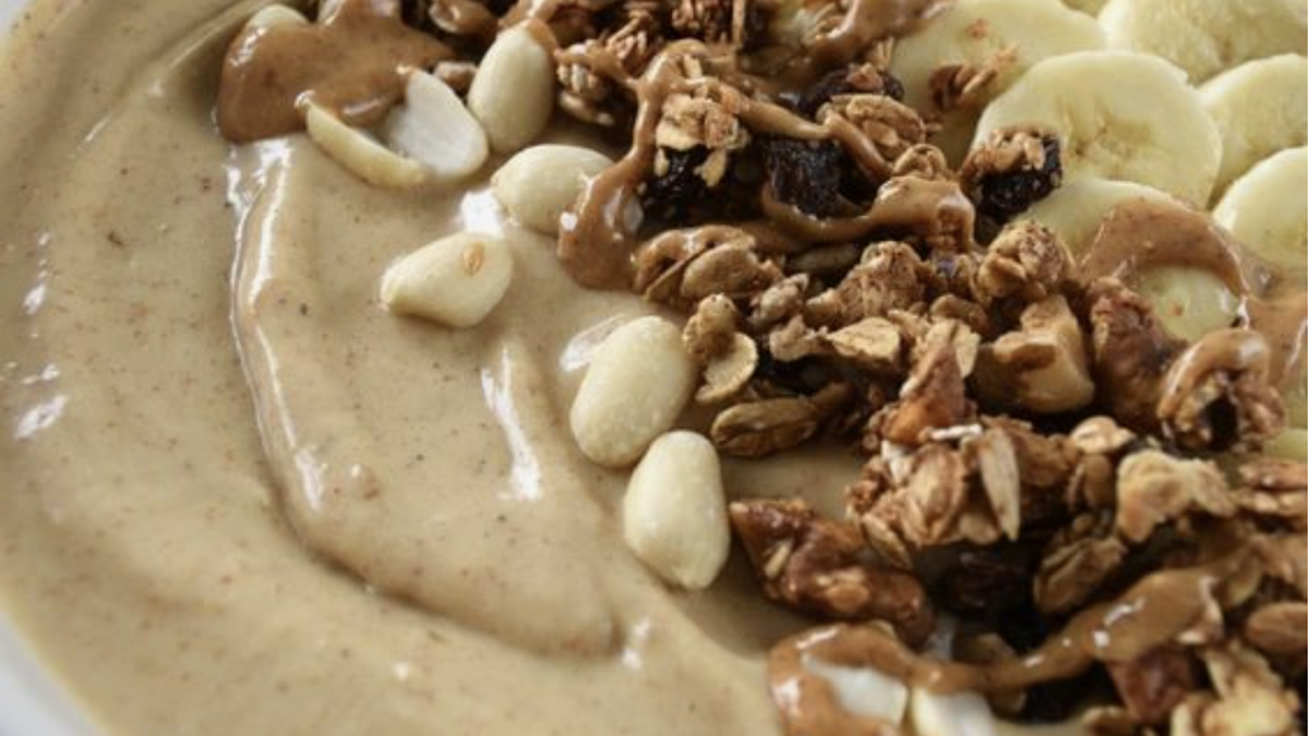 Χτυπάμε καλά σε ένα μπλέντερ όλα μαζί τα υλικά για τη βάση. Σερβίρουμε σε ένα μπολ και γαρνίρουμε με τη μισή μπανάνα και το γκρανόλα. Καλή σας απόλαυση!