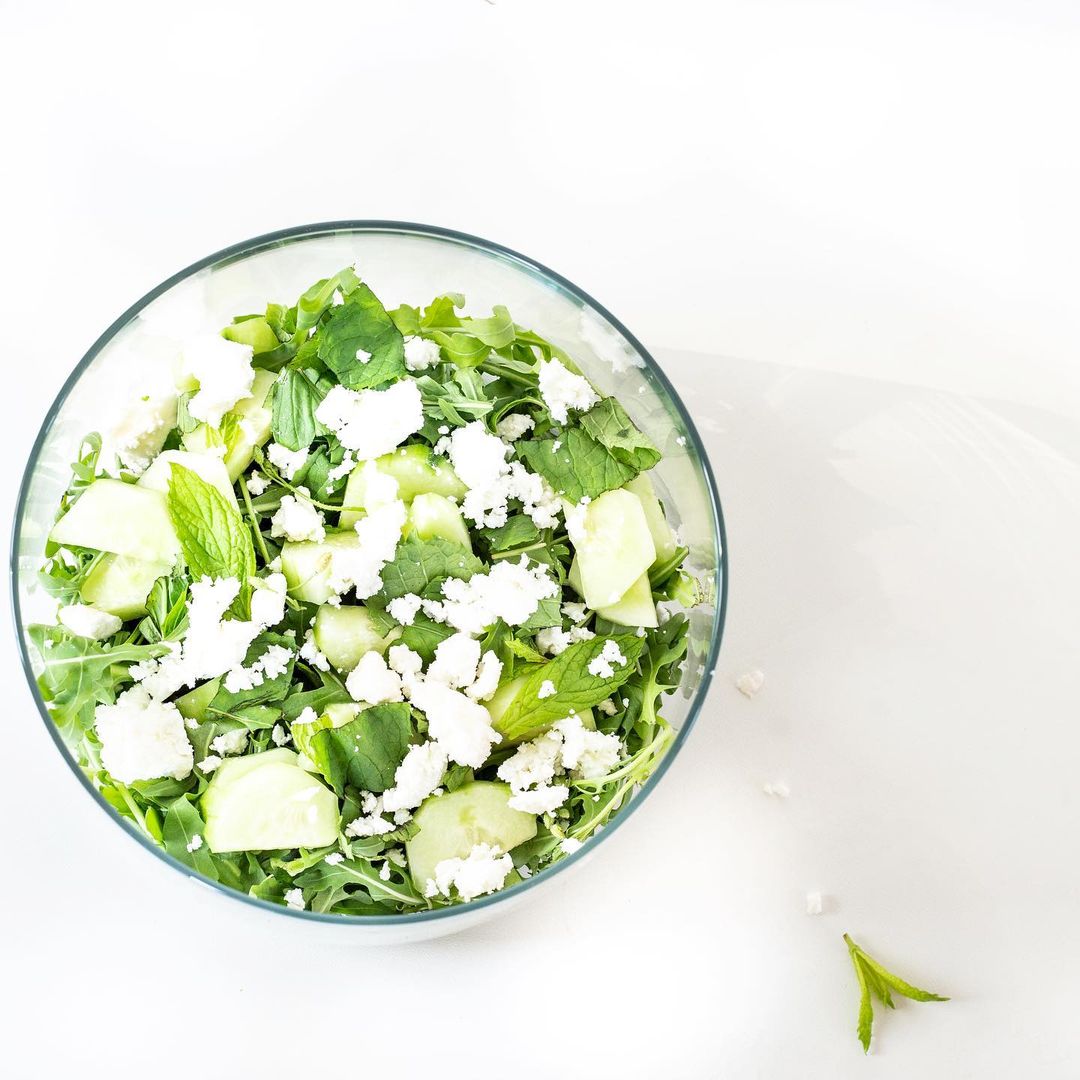 Σε ένα μπολ, ψιλοκόβουμε το iceberg, τη ρόκα, το baby σπανάκι και το αγγούρι. Προσθέτουμε το δυόσμο, το βασιλικό και τη μυζήθρα. Για dressing, τοποθετούμε σε μία κούπα το ελαιόλαδο, το χυμό lime, το μέλι και το χονδρό αλάτι και ανακατεύουμε πολύ καλά. Στη συνέχεια, προσθέτουμε το dressing στο μπολ με τα λαχανικά και τη μυζήθρα. Ανακατεύουμε και απολαμβάνουμε.