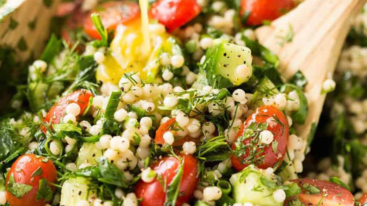 - Σε ένα μεγάλο μπολ ανακατέψτε όλα τα υλικά για τη σαλάτα μαζί με το πλιγούρι και στο τέλος περιχύστε με το dressing.