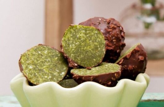 - Βουτήξτε τις μπάλες στη λιωμένη σοκολάτα και τοποθετείστε σε ένα δίσκο και βάλτε τα στο ψυγείο μέχρι να τα σερβίρετε.